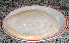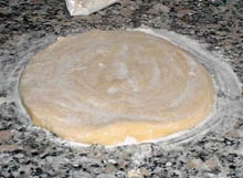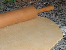 Passato il tempo di riposo, stenderla con il mattarello fino ad ottenere un disco della dimensione desiderata. |