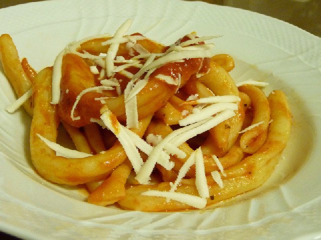 ...e insaporirli con un semplice sugo di pomodoro e cacioricotta a scaglie, così: