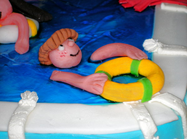 Partendo dal fatto che ognuno usa la tecnica che preferisce...mi spiegate perchè volete fare tutto stò casino per la piscina? :-) Sopra, la mia, è di panna, i bordi sono di panna azzurra, la pasta di zucchero sta solo nel bordo della piscina.