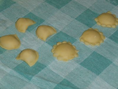 Ed ecco la forma finale: quelli tondi sono più carini, ma il ci sta poco ripieno, quindi è meglio farli a mezzaluna: