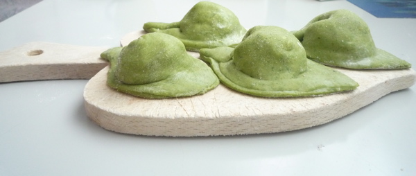 Una pasta chiamata "Cappelli d'Alpino" ripienda di formaggi condita con pomodorini e basilico!!!
