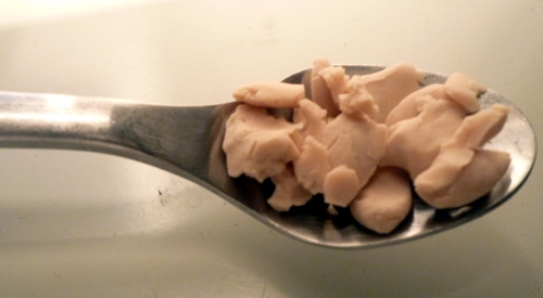 Ketty non ho la foto,ho usato un cucchiaino da caffè,l'ho sbriciolato un pò in più rispetto a quello di Monica tipo grani di pepe e pesa 4 gr.spero che ti sia d'aiuto,un bacio.