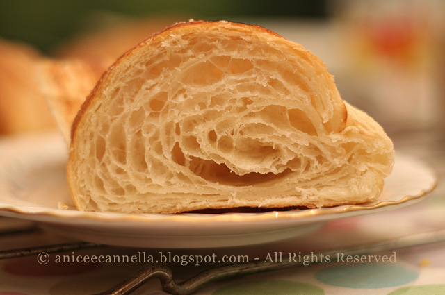 La prova del nove e' stata quando ho tagliato a meta' il croissant: speravo tanto che non ci fosse quella linea di burro in basso... invece nonostante alcune accortezze un cenno ci stava lo stesso, e la cosa strana in alcuni si... in altri no
