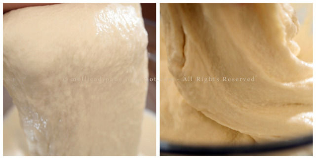 Lavorare l’impasto circa 5 minuti, deve comunque assumere una consistenza elastica ma nello stesso tempo molto morbida.