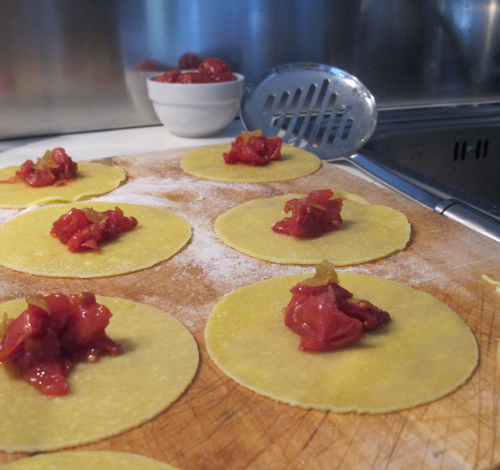 Il problema questo è: trovare un modo per chiudere il raviolo prima della farcitura, che io il pomodoro candito bollito non lo vedo proprio.
