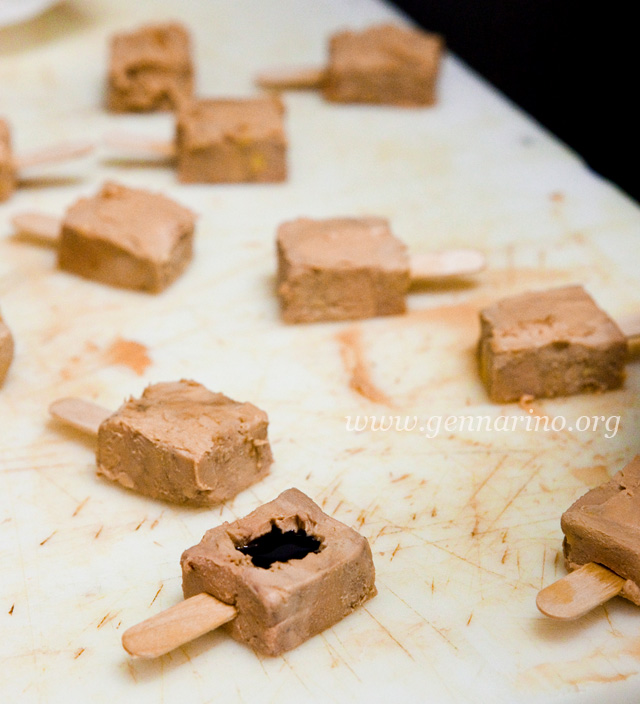 Ps. nota mia, il passaggio sullo stecco del gelato non corrisponde, evidentemente, alla procedura seguita alla francescana. Come si vede dalle foto, questo è messo PRIMA.