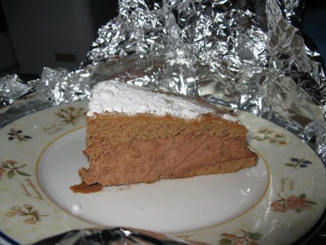 4 uova intere, 2 albumi, 120 gr di zucchero, un cucchiaio colmo di cacao amaro, 120 gr di farina. Sbattere bene i tuorli con lo zucchero, aggiungere la farina e il cacao passati al setaccio, e infine gli albumi ben montati a neve. Un suggerimento: mescolate con un cucchiaio di legno, altrimenti il tutto si affloscia. Infornate a forno moderatamente caldo finchè l'impasto è ben cotto e asciutto. (a casa mia bastano 20 minuti a 180°, ma ogni forno funziona a modo suo...). Rovesciare su un piatto e tagliare a metà.