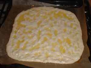 parti uguali e cospargere la superficie della focaccia. Lasciare