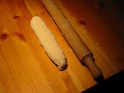 - prelevarlo dal bagno d’acqua, strizzarlo e pesarlo; - impastarlo con egual peso di farina forte e acqua a 30°C (il 30% del peso della farina); - rullarlo 4-5 volte. L’operazione di rullatura è descritta nelle 5 foto qui sotto); E’ una operazione che serve ad omogeneizzare l’impasto del panetto. Per ottenere un risultato ottimale la sequenza da 2 a 5 va ripetuta per 4-5 volte.