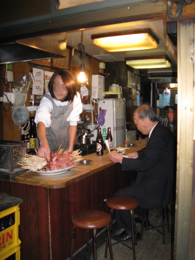 Il primo pranzo e' in un "noodle bar": da tornarci solo per fargli le foto, il locale delizioso. Si mangia ai tavoli o al banco, noi andiamo al banco. Come in tutti i posti, anche il piu' umile, anche per la colazione, ti danno delle pezzette umide e profumate per "avarti" le mani. Il menu' ovviamente e' solo in giapponese, meno male che non siamo soli, optiamo per una zuppa con udon e brodo chiaro di pollo. Arriva in una zuppierina in coccio alla temperatura della corona solare, accompagnata da un mestolino di legno ed un altro recipiente vuoto, in cui man mano si travasa il contenuto della zuppierina. Il tutto e' accompagnato da vari altri piattini contenenti verdurine varie calde ma tipo sottaceti, altre sauteed (spinaci?), dell'ottimissimo tofu. Gli udon sono degli spaghettoni che mi ricodano gli strengozzi di Viterbo, immaginatevi i pici di PAoletta, solo piu' schiacciati e piu' larghi, e inoltre credo siano di riso. Il brodo e' saporitissimo. Purtoppo, niente foto.