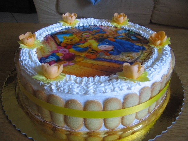 Questa volta su richiesta di mia cognata ho preparato la torta di compleanno per mia nipote, rigorosamente in onore di Winnie the Pooh!!! Lei adora tutta la famigliola di Pooh, ed io volevo renderla davvero felice tant'è che ha spalancato gli occhi quando l'ha vista. Premetto che sto imparando a fare le torte decorate e con "l'assistenza" paziente di Marialetizia (che puntualmente interrogo prima di avventurarmi), a detta di chi l'ha mangiata, sto imparando davvero bene...
