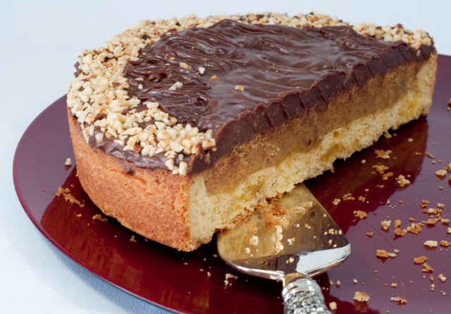 Il guscio di frolla per la presenza del lievito risulta un po' altino,ma ci sta bene perchè è talmente friabile che si fonde perfettamente con il ripieno.Torta goduriosa.