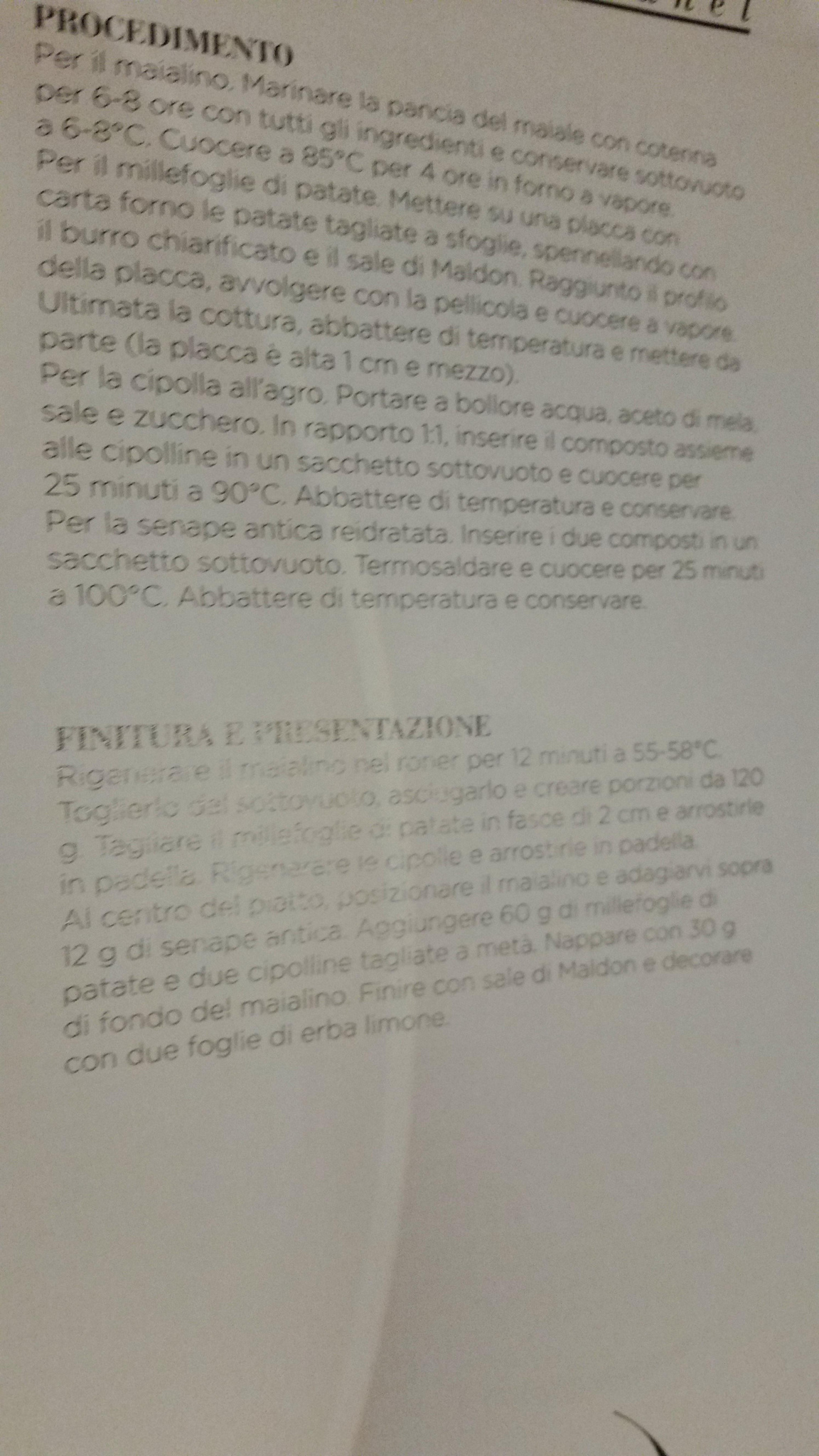 Credo che pero' si legga: prima marinatura e poi cottura sotto vuoto. Con relative temperature. Poi al momento del consumo, viene rigenerato e servito.