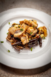 La caponata siciliana bianca con pesce spada è una variante fresca e leggera della celebre ricetta siciliana. Senza pomodoro, ma ricca di melanzane, sedano, uvetta e pinoli, acquista un tocco in più grazie ai cubetti di pesce spada che la rendono un piatto unico, perfetto da servire sia come antipasto che come secondo mediterraneo.