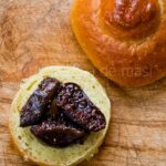 Mescolate il latte tiepido con il lievito e 90 g di farina. Lasciate riposare il composto per circa 40 minuti, finché non si gonfia. Quando ciò accade, aggiungete le uova, il sale, lo zucchero e circa 300 g di farina, quindi impastate bene.